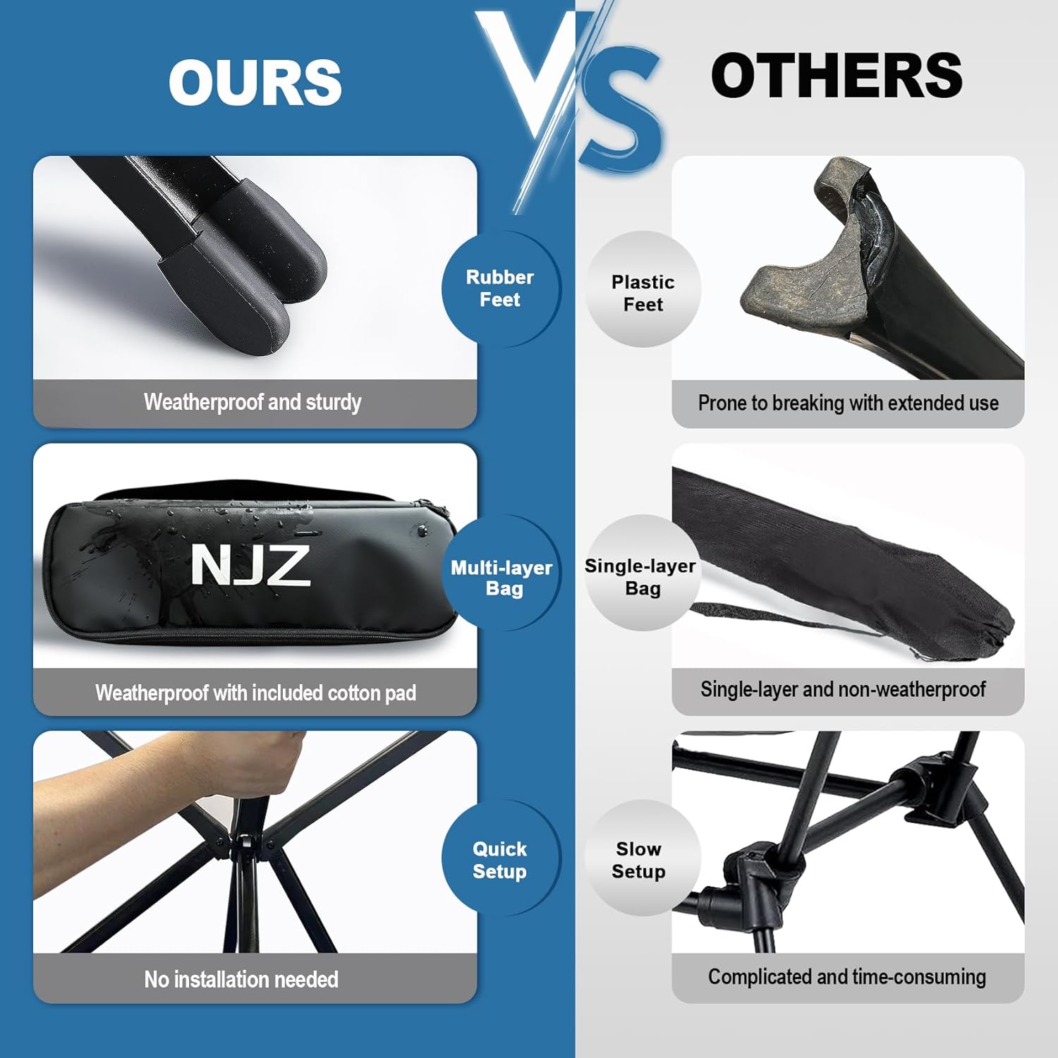 Crafted with durability in mind, this outdoor chair can support up to 200 lbs while remaining lightweight and easy to carry. The sleek black design adds a touch of style to your outdoor setup, making it perfect for any adventure.